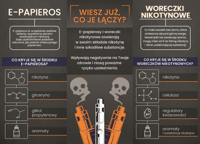 Plakat: E-papierosy i woreczki nikotynowe (Uczniowie)